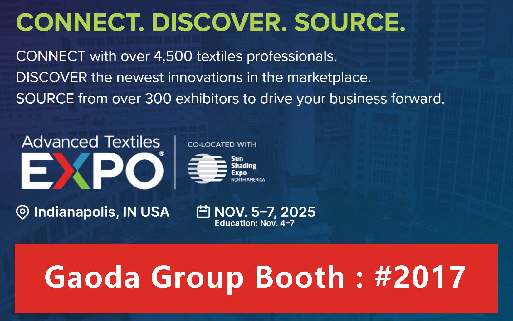 Gaoda Group akan berpartisipasi dalam Pameran AT Expo 2025 yang diadakan di Indianapolis, IN dari tanggal 05 November hingga 07 November. Sebagai produsen kain industri berkinerja tinggi terkemuka di dunia, Gaoda Group akan memamerkan rangkaian lengkap bahan pelapis pisau PVC, bahan jaring, kain industri rajutan lusi berkinerja tinggi, dan produk kulit asli daur ulang yang ramah lingkungan.